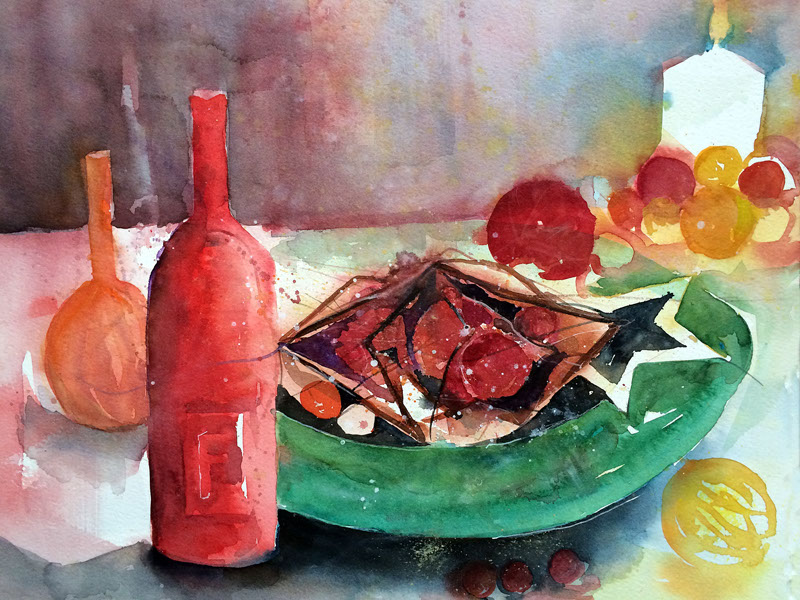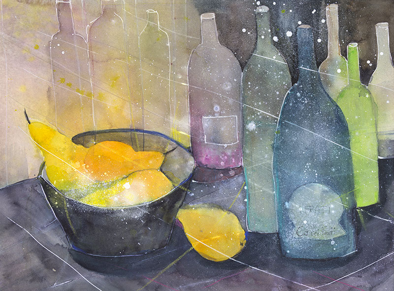 Bunte Flaschen mit Birnen | 50 x 60 cm