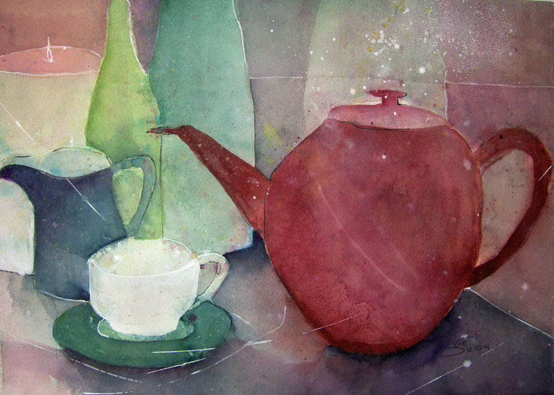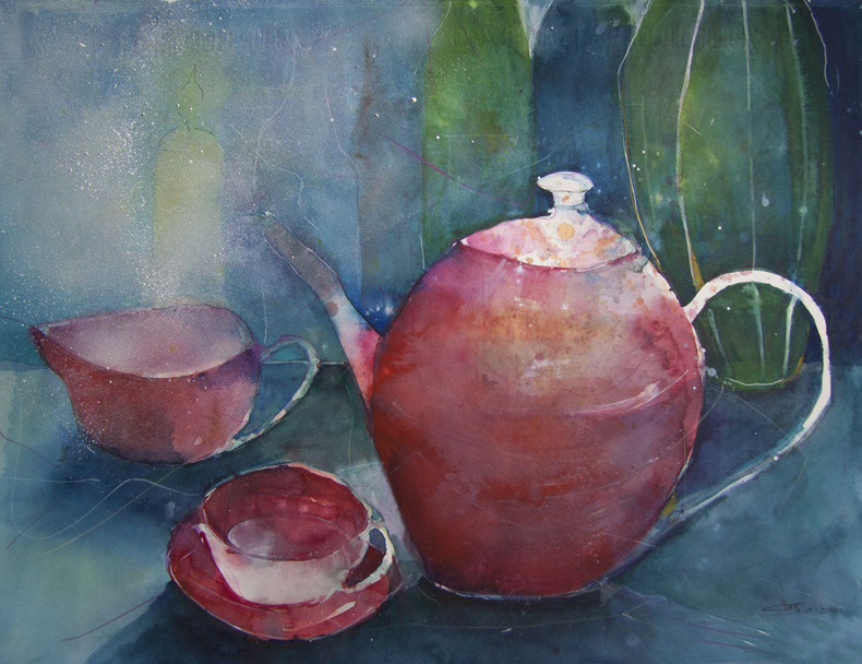 Bunte Flaschen mit Birnen | 50 x 60 cm